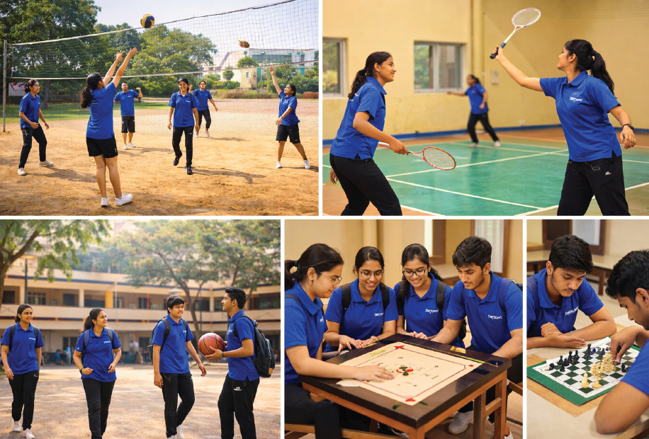 - Indoor games: chess, carrom